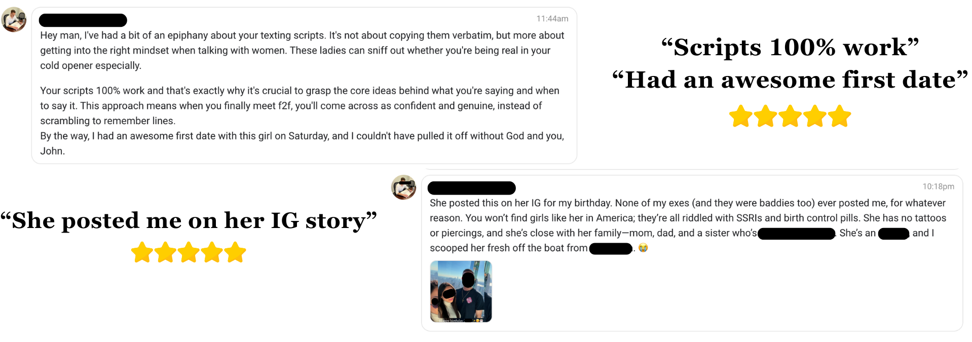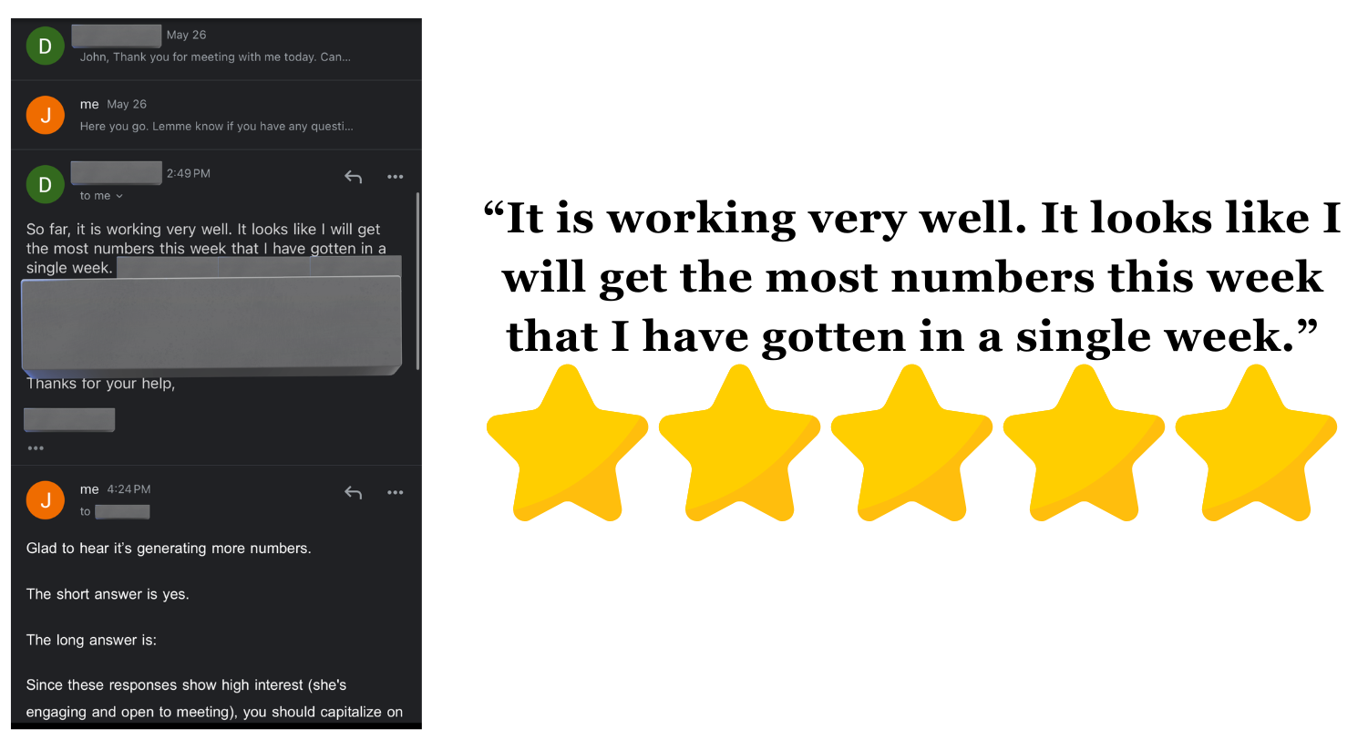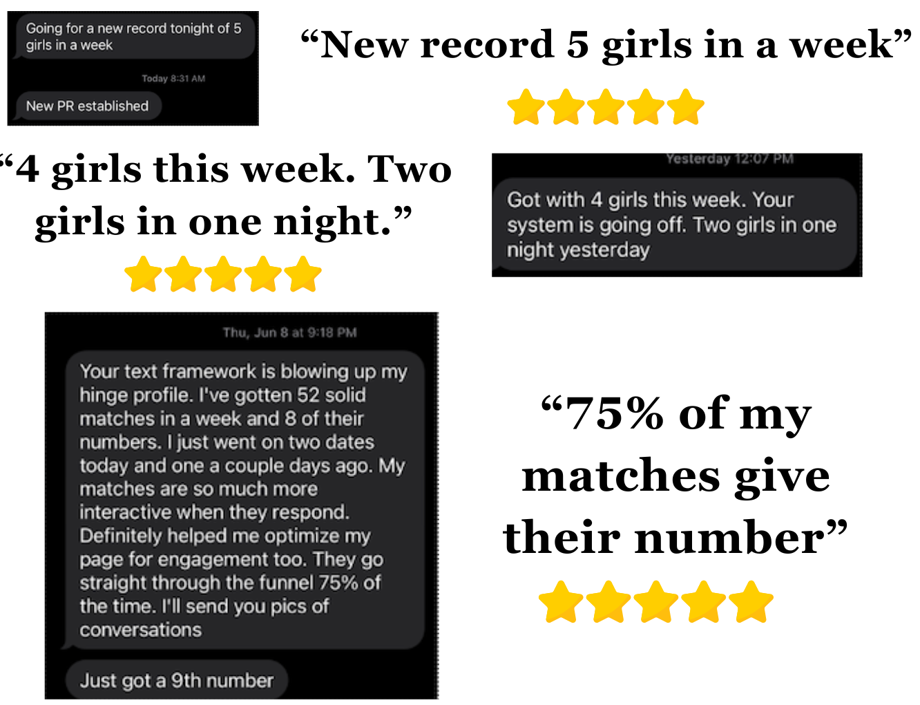 - Dozens of 1-to-1 coached clients and real conversations